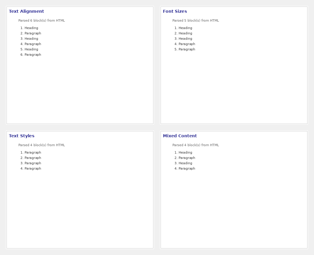 • 📝 HTML Parsing - Parse HTML content into structured document blocks